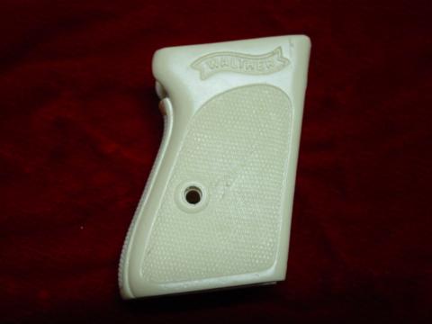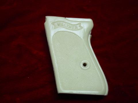 | HIGHLY ACCURATE REPRODUCTION OF SIMULATED IVORY PISTOL GRIPS FOR THE WALTHER PPK . THEY ARE MADE FROM PHENOLIC RESIN AND LOOKS JUST LIKE VERY RARE WALTHER GRIPS FOR THE PRESENTATION MODEL . Price $59.00 S&H in USA $6.00 International shipping is extra. |